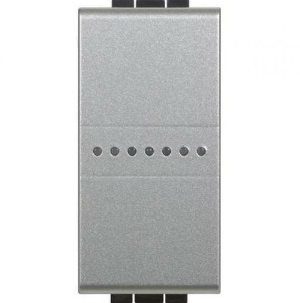 Deviatore connesso. Permette di controllare le luci localmente o da remoto. Si installa come un deviatore tradizionale ed è compatibile con tutti i carichi con potenza massima di 250 W. È dotato di un LED blu, configurabile dall’APP HOME + CONTROL, per le funzionalità di localizzazione e stato carico. Può essere associato ad uno o più comandi wireless. Attenzione: è necessaria la connessione al neutro. Alimentazione 110-230 Va.c. - 1 modulo.
