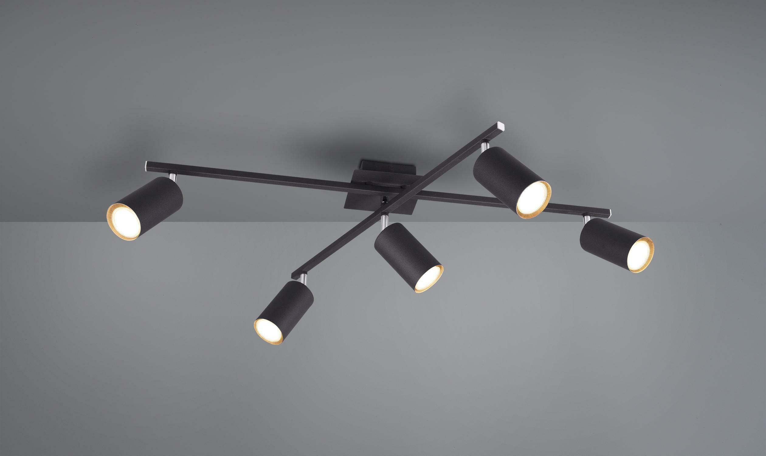 MARLEY PLAFONIERA 2 BARRE ORIENTABILI 5 SPOTS CILINDRO METALLO NERO L. 77,5CM 612400532