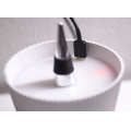 Il funzionamento è a batteria ricaricabile con alimentazione tramite cavo USB (visibile in foto), soluzione pratica per evitare cavi in vista durante l’uso e per posizionare la lampada dove serve. L’accensione e la gestione della luce dipendono dal modulo integrato nel corpo lampada.