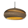 Questa sospensione dal diametro di 40 cm è realizzata in cartone riciclato, offrendo una soluzione per illuminare ambienti interni con un tocco di design consapevole. La particolare lavorazione del materiale crea giochi di luce caldi e avvolgenti, ideali per salotti, cucine moderne o spazi studio contemporanei. Il portalampada E27 consente di utilizzare qualsiasi lampadina LED fino a 15W, favorendo risparmio energetico e mantenendo alta la diffusione luminosa.