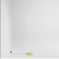 Lampada da terra per interno con LED integrato da 28 W , progettata per illuminazione diretta e uniforme in ambienti domestici e professionali. La linea minimale a stelo e la struttura in alluminio con finitura oro valorizzano soggiorni , zone lettura , camere e spazi contract con un punto luce elegante e poco ingombrante.