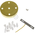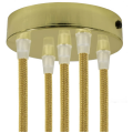 Kit rosone cilindrico in metallo a 5 fori, progettato per realizzare sospensioni multi calata e lampade con cinque punti luce a soffitto o a parete. La finitura ottone valorizza il progetto illuminotecnico con un effetto luminoso e decorativo, adatto sia ad ambienti classici sia a interni moderni. Il corpo metallico contribuisce a una maggiore solidità nel tempo, mentre la chiusura con staffa facilita l’installazione e la centratura del rosone.