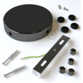 Rosone cilindrico in metallo con 4 fori laterali, progettato per realizzare punti luce a parete o a soffitto con più discese cavo, ideale per configurazioni con quattro sorgenti luminose. La finitura nero perla dona profondità e riflessi eleganti, valorizzando ambienti moderni e progetti di interior lighting dal taglio contemporaneo.