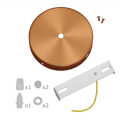 Kit rosone a soffitto in metallo rame satinato progettato per realizzare lampade a sospensione o a parete con un punto luce centrale e la possibilità di gestire fino a due uscite laterali per passaggio cavi. La finitura satinata esalta toni caldi e discreti, ideale in progetti di illuminazione decorativa dove contano dettaglio e coerenza estetica.