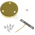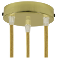 Kit rosone cilindrico in metallo a 3 fori, finitura ottone, pensato per realizzare una sospensione multipla ordinata e pulita a soffitto. La piastra consente di far scendere tre cavi in modo separato, creando un punto luce scenografico e ben bilanciato; ideale per tavoli, isole cucina, ingressi e ambienti contract dove si cerca un dettaglio tecnico ma anche decorativo.