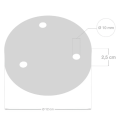 Diametro rosone 120 mm; diametro fori 10 mm; chiusura a soffitto tramite staffa. Il kit include serracavi per la gestione del passaggio cavo: versione tonda con cappuccio Ø 13 mm e altezza 17 mm (componenti in plastica e metallo) e tubo filettato metallico M10x1 con altezza 15 mm; oltre a serracavo conico in termoplastica (altezza 43 mm, diametro 14,8 mm). La struttura metallica garantisce stabilità e durata nel tempo.