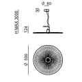 La lampada a sospensione con corpo in alluminio e montatura in ferro, entrambi verniciati nero text RAL 9005, offre un'estetica professionale e robusta, ideale per ambienti moderni o minimalisti. Il diametro di 50 cm garantisce una presenza importante senza risultare ingombrante, mentre la lunghezza del cavo fino a 300 cm assicura adattabilità a vari contesti e altezze di installazione.