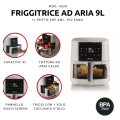 Friggitrice ad aria capiente da 9 L con potenza 1500 W, progettata per cucinare porzioni abbondanti con un uso ridotto di olio, fino a un solo cucchiaio. La circolazione di aria calda a 360° consente una cottura omogenea e una doratura esterna croccante, con temperatura regolabile fino a 200 °C. .