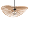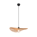 Sospensione in filato di carta dal design contemporaneo, adatta a vari spazi interni. Il paralume intrecciato in carta marrone dal diametro di 58 cm offre una raffinata diffusione della luce, donando calore e carattere ad ambienti come soggiorno, cucina o ristorazione.