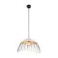 Lampada a sospensione in rattan e metallo, pensata per chi desidera un elemento d’arredo distintivo e funzionale per ambienti domestici. L’abbinamento della cupola in rattan naturale con la struttura in metallo nero opaco garantisce eleganza e durabilità, inserendosi perfettamente nelle tendenze contemporanee dell’interior design.