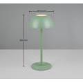 Lampada da tavolo LED compatta e ricaricabile, dotata di sensore touch a 4 livelli per una regolazione accurata della luminosità. Il design moderno si abbina a una raffinata colorazione verde pistacchio e a un formato salvaspazio: altezza 30 cm e diametro 13,5 cm. La protezione IP54 consente di collocare la lampada sia su piani d’appoggio domestici sia in ambienti esterni come balconi o verande.
