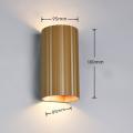 Applique da parete in metallo con finitura caffè e corpo cilindrico rigato, pensata per valorizzare corridoi, ingressi, soggiorni e zone notte con un effetto luminoso elegante e misurato. Il fascio su e giù crea accenti sulle superfici, migliorando la percezione degli spazi e aggiungendo profondità alle pareti.