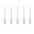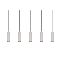 Linea pulita, presenza scenica e luce ben distribuita. Questa sospensione lineare con cinque punti luce affiancati crea un’illuminazione decorativa e funzionale, ideale sopra tavoli da pranzo lunghi, isole cucina e zone living open space. La superficie dei cilindri con scanalature verticali aggiunge una texture elegante, mantenendo un’estetica moderna e discreta.