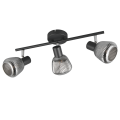 Il faretto a barra orientabile con 3 spots valorizza ogni ambiente domestico o professionale grazie alle sue linee moderne e ai materiali di pregio. La struttura in metallo nero opaco si abbina a raffinati diffusori in vetro cromato, garantendo un effetto luminoso suggestivo e personalizzato. Il montaggio a soffitto permette di sfruttare al meglio l’intera larghezza della barra (47,5 cm), indirizzando la luce dove più serve tramite l’orientabilità di ogni spot.