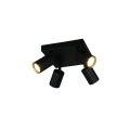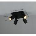 I quattro spot, completamente orientabili, consentono di dirigere la luce verso zone specifiche ottimizzando luminosità ed effetti scenografici. L'apparecchio supporta lampadine GU10 fino a 10W (non incluse), permettendo la scelta tra diverse tonalità e intensità a seconda delle esigenze. Realizzato in metallo con finitura nero opaco, coniuga design minimale a robustezza strutturale, risultando elegante e resistente nel tempo.