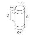 Misure compatte: altezza 16 cm e diametro 6,4 cm, con base a parete studiata per un fissaggio stabile. Ideale quando si desidera un’applique esterna discreta ma d’impatto, adatta a installazioni singole o in serie lungo un perimetro.