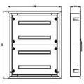 Lo spazio interno è organizzato su 4 guide DIN e 4 file, per un totale di 96 moduli (24 per guida), con ingresso cavo integrato. Dimensioni nominali: 800 x 600 x 140 mm. Finitura colore grigio chiaro RAL 7035.