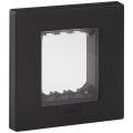 La calotta è in formato 2 moduli Linea e si abbina a scatole da incasso con interasse 60 mm, creando una chiusura protetta e ordinata della serie protetta e stagna. La struttura in plastica offre resistenza e stabilità in esercizio, con finitura nera adatta a installazioni discrete e pulite.