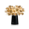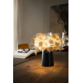 Lampada da tavolo di design con LED integrato e alimentazione a batteria, pensata per creare un punto luce d’atmosfera senza vincoli di presa. La finitura Gold e Black valorizza la geometria decorativa del diffusore, generando un’illuminazione calda e diffusa, ideale per living, camera, studio, ristorazione e allestimenti.