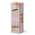 Funziona a 220–240 V 50/60 Hz ed è classificata IP20 per uso interno. Ogni punto luce supporta lampade con attacco E27, non incluse, con potenza massima consigliata fino a 6 W LED per ciascuna luce. La struttura lineare facilita l’allineamento sopra superfici rettangolari, migliorando la distribuzione luminosa rispetto a una singola sospensione.