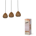 Sospensione lineare a 3 luci con portalampada E27, pensata per valorizzare tavoli, penisole e isole cucina con un’illuminazione uniforme e d’effetto. I tre diffusori a forma di goccia in carta intrecciata creano una luce morbida e decorativa, ideale per ambienti interni dove si desidera un tocco naturale e contemporaneo.