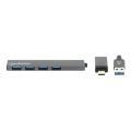 Hub USB 3.2 compatto con 4 porte USB A per ampliare in modo immediato la connettività di notebook e PC. È indicato per collegare periferiche come mouse, tastiere, chiavette e lettori di schede, oltre a gestire sincronizzazione e ricarica di dispositivi mobili direttamente dalla porta del computer.
