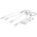 . Il set include cavi in acciaio con terminali e componenti di ancoraggio, pensati per semplificare il montaggio e ridurre i tempi in cantiere. La soluzione a sospensione consente di posizionare i punti luce alla quota desiderata, migliorando uniformità e comfort visivo.