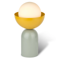 Lampada da tavolo decorativa con portalampada E14 non inclusa, progettata per creare un punto luce d’atmosfera su comodini, consolle, mensole e piccoli tavoli. Il design a ciotola valorizza la sorgente luminosa e contribuisce a diffondere una luce morbida, ideale per zone relax e ambienti domestici.