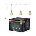 Lunghezza cavo 7 m, 3 punti luce con attacco E27. Corpo in silicone con componenti in PVC e gomma, progettato per uso esterno con protezione IP44. Non dimmerabile. Temperatura ambiente di funzionamento da -20 a 40 °C. Completo di fascette e ganci per un montaggio rapido su travi e punti di ancoraggio. Qualità costruttiva LEDVANCE per installazioni affidabili in contesti outdoor riparati.