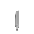 Corpo in alluminio pressofuso verniciato a polveri, diffusore in vetro piano extra-chiaro di sicurezza temprato e riflettori in alluminio ad alta purezza. Grado di protezione IP66 e resistenza agli urti IK07. Dotato di pressacavo antistrappo M20x1.5 per cavi Ø10–Ø14 mm, viteria inox, clip con molla inox e protezione alle sovratensioni di rete fino a 10 kV. Dimensioni complessive 355 x 425 x 85 mm, finitura grigio metallizzato.
